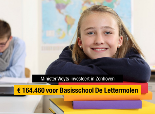 Vlaams minister van Onderwijs Ben Weyts (N-VA) investeert zo via het Agentschap voor Infrastructuur in het Onderwijs (AGION) € 164.460 in Vrije Basisschool - De Lettermolen in Zonhoven. Concreet gaat het om: